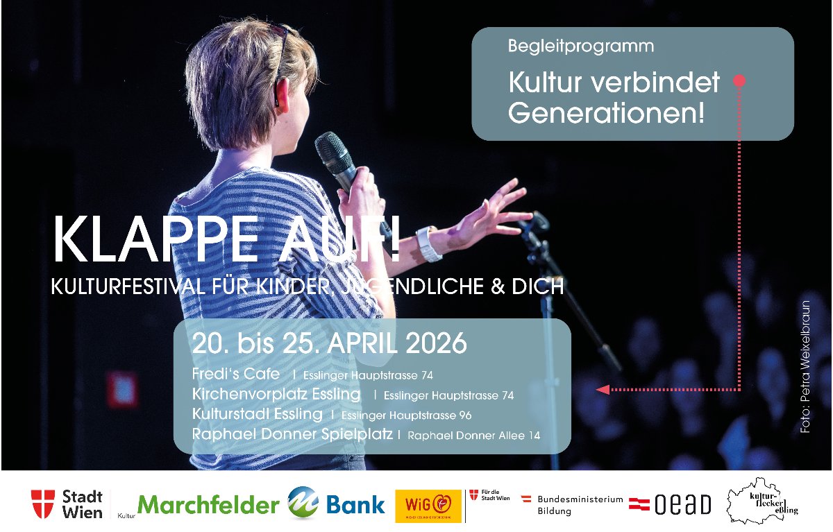Kulturfleckerl Eßling Eßlinger Hauptstraße 96, Wien, AustriaKLAPPE AUF! Kulturfestival für Kinder, Jugendliche und Dich Ein interaktives Konzert mit Musikerin Angela Mair alias Gitaline für die ganze Familie im Rahmen von KLAPPE AUF! Kulturfestival für Kinder, Jugendliche […]